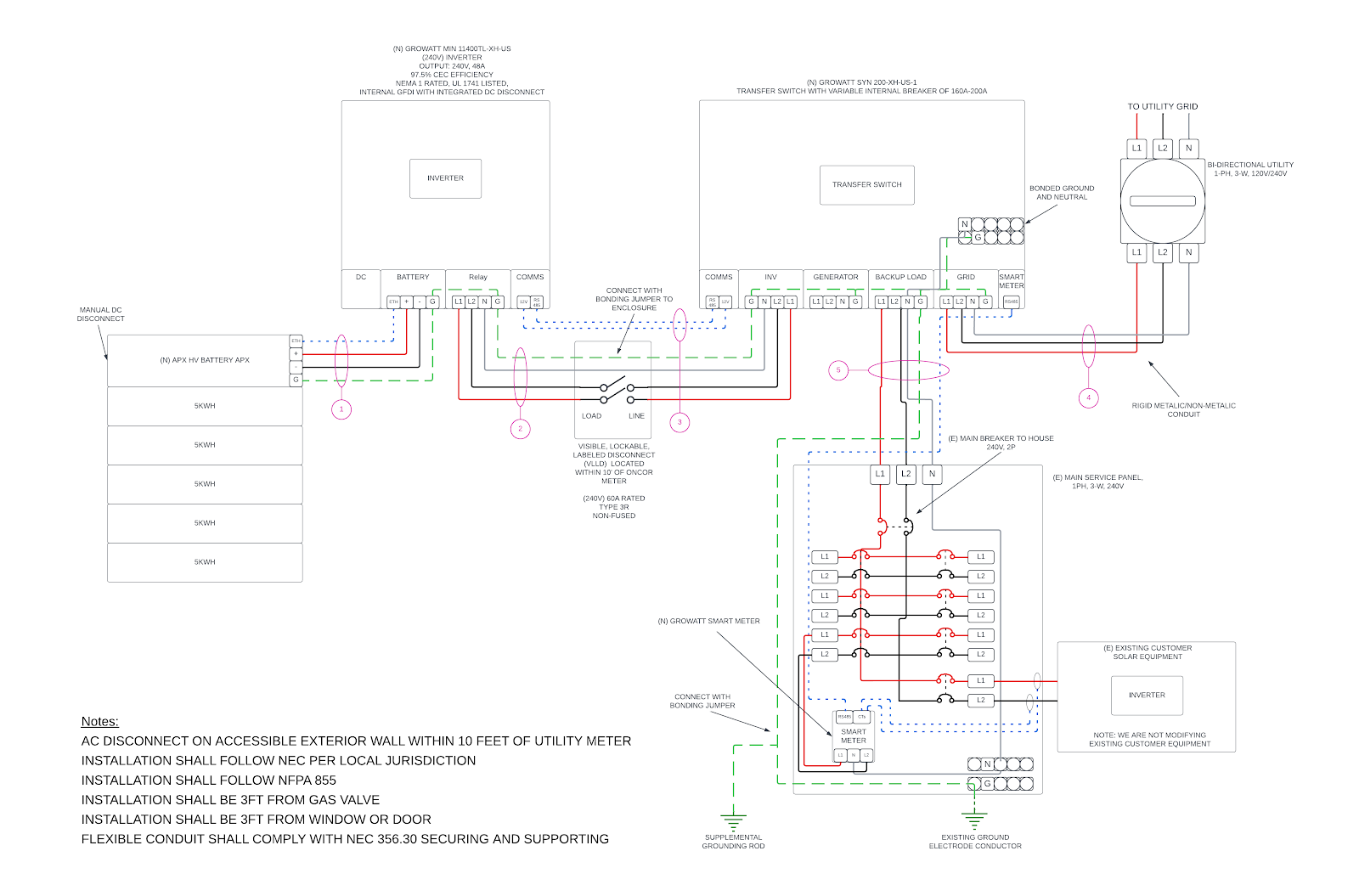Here is a wiring diagram for a single 25 kWh ground-mounted Base battery. Actual configurations may vary.